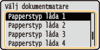 Välj något av <Papperstyp låda 1> till <Papperstyp låda 4> och tryck på