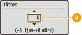 2 | Använd / för att justera tätheten.![]() Justering av tonertäthetAnge ett "+"-värde för att öka tätheten. Ange ett "-"-värde för att minska tätheten. |