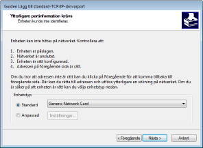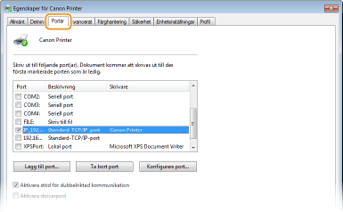 Lägg till en ny port om du har bytt IP-adress för enheten eller valt fel port vid installationen av drivrutiner.