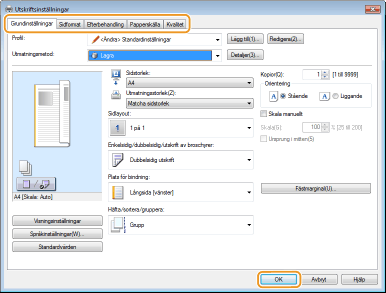 Ange de utskriftsinställningar som behövs och klicka på [OK].
