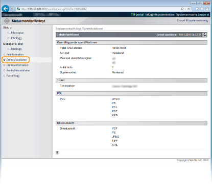 Om det inte finns något extra SD-kort i enheten raderas historiken när enheten stängs ned genom en kontrollerad avstängning eller maskinvaruåterställning. Om du loggar in på enheten som allmän användare när [Tillåt allmänna användares jobbåtgärd] är aktiverat visas inte dokumentnamnen för andra jobb än dina egna. Istället visas asterisker, t.ex. "********". Tillåta slutanvändare att hantera dokument |