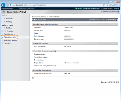 [Hanteringsinställningar] på sidan [Inställningar/Registrering].