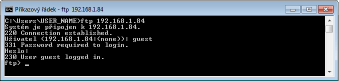 Zadejte „ftp <IP adresa zařízení>“ a stiskněte tlačítko [ENTER].