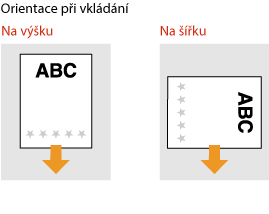 Tato část popisuje způsob vložení předtištěného papíru správnou stranou nahoru a ve správné orientaci. Obecný postup vkládání papíru do zásuvky na papír nebo do víceúčelové přihrádky naleznete v následující části.