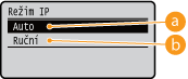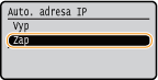 Vyberte možnost <Auto. adresa IP> a stiskněte