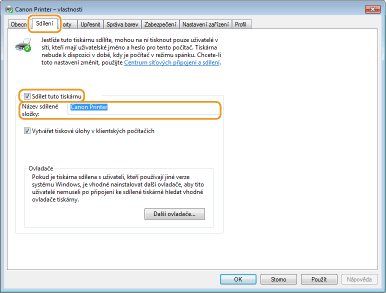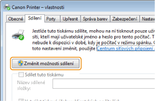 Spustí se instalace přídavných ovladačů. Počkejte, až se zobrazí karta [Sdílení].