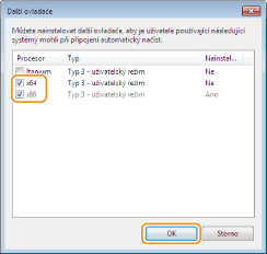 Zaškrtněte políčko u bitové architektury používané dalšími počítači a klikněte na tlačítko [OK].