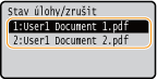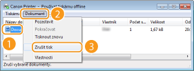 Zrušení pomocí Vzdáleného URTisk lze zrušit ze stránky [Stav úlohy] ve Vzdáleném UR: Kontrola aktuálního stavu tištěných dokumentů