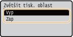 Určete, zda má být obrázek vytištěn se zvětšením tiskové oblasti plně na velikost papíru. Pomocí tlačítek