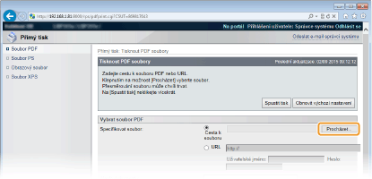 Můžete vytisknout soubor z webového prohlížeče (vzdálené uživatelské rozhraní), aniž byste soubor otvírali. Navíc můžete tisknout také soubor PDF přímo z webu, a to po zadání URL.