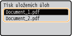 vyberte možnost <Tisk uložených úloh> a stiskněte tlačítko