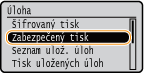 vyberte možnost <Zabezpečený tisk> a stiskněte tlačítko