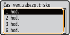 Vyberte možnost <Čas vym.zabezp.tisku> a stiskněte tlačítko