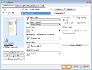 Podle potřeby zadejte nastavení tisku a klikněte na [OK].
