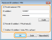 Pro zadání kódu PIN zaškrtněte dané políčko a zadejte stejné číslo do textového pole [PIN] a [Potvrdit].