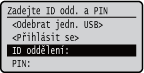 Podle potřeby zadejte PIN odpovídající ID oddělení.