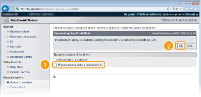 Zaškrtněte políčka [Použít potvrzení PIN správy ID oddělení]