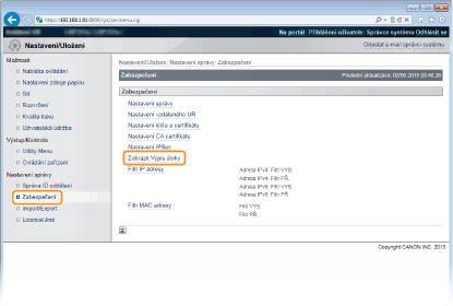 Pokud zaškrtnete políčko, k získání historie tiskových úloh lze použít software pro správu zařízení, například iW Management Console. Zrušte zaškrtnutí políčka a vypněte software pro správu k získání historie tiskových úloh. Tato funkce je automaticky povolena, je-li zaškrtnuto políčko [Zobrazit Výpis úlohy].