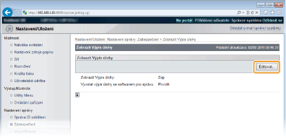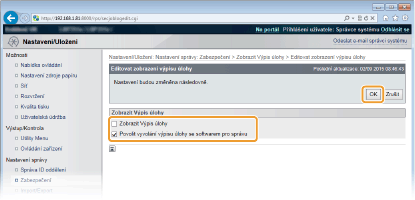 Pokud zaškrtnutí zrušíte, historie tiskových úloh se na obrazovce vzdáleného uživatelského rozhraní nezobrazí a nelze ani vytisknout seznam historie tisku. Chcete-li historii úloh zobrazit, zaškrtněte políčko.