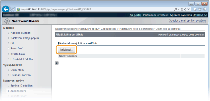 Klikněte na možnost [Uložit klíč a certifikát] nebo [Uložit CA certifikát].