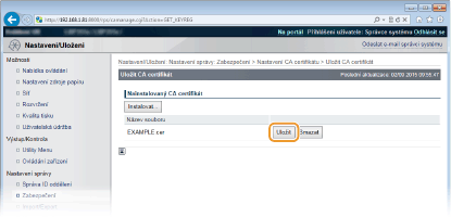 Klikněte na tlačítko [Uložit] nacházející se vpravo od certifikátu CA, který chcete zaregistrovat.