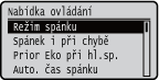Nastavení týkající se režimu spánku a toho, jak se tiskárna má chovat pokud dojde k chybě, jsou uvedena s krátkým popisem. Výchozí nastavení jsou označena křížkem (