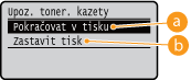 <Pokračovat v tisku> nebo <Zastavit tisk>