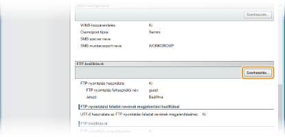 Kattintson a [Szerkesztés] lehetőségre a [FTP-beállítások] mezőben.