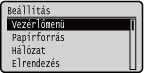 ) megjelenik a megfelelő menü képernyő. Az alábbiakban látható a