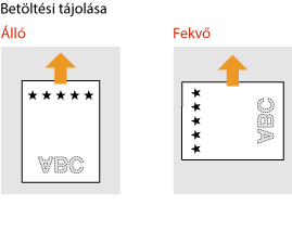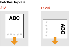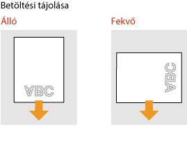 Ez a rész elsősorban az előnyomott papír helyes oldallal és tájolással történő behelyezésével foglalkozik. A papírlapok papírfiókba vagy többcélú tálcába történő behelyezésének általános eljárását a következő részben olvashatja.
