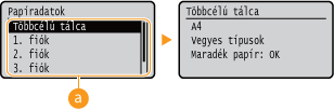Az egyes papírforrások szerint megjelenítheti az aktuálisan beállított papírméretet és papírtípust, valamint a fennmaradó papírmennyiséget.