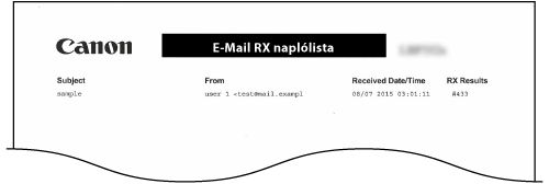 Nyomtatási naplólistát nyomtathat a készülék által fogadott e-mailekről.