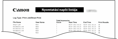 Lista formájában kinyomtathatja a jelentésekre vonatkozó beállításokat és a jelentések nyomtatási naplóját.