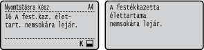 Ha a <A festékkazetta élettartama nemsokára lejár.> üzenet jelenik meg, akkor a nyomtatás ideiglenesen leáll. A nyomtatás folytatásához nyomja meg a