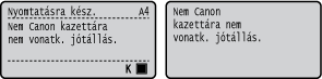Az üzenet megjelenése után folytathatja a nyomtatást, de romolhat a nyomtatási minőség. A nyomtatás folytatása károsíthatja a készüléket.