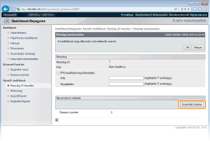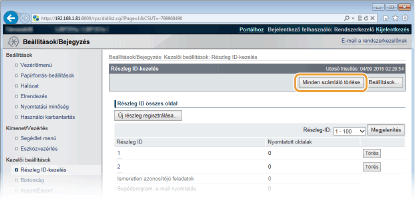 Az ellenőrzés eredményének nyomtatásaOldalszámlálás visszaállítása nulláraHa az egyes részlegek oldalszámlálását vissza kívánja állítani nullára, akkor kattintson a [Részleg ID] alatt található szöveges hivatkozásra, majd kattintson a [Számláló törlése]