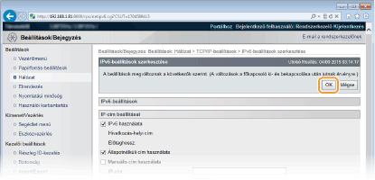 A beállítások helyességének ellenőrzéseGyőződjön meg róla, hogy a Távoli felhasználói felület képernyője megjeleníthető a számítógépen a készülék IPv6-címének használatával. A Távoli felhasználói felület indítása