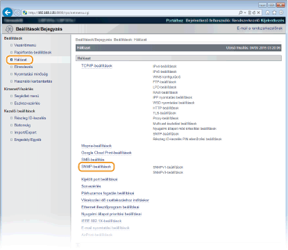 A készülék figyelése és vezérlése SNMP protokollal