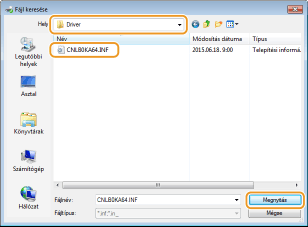 Adja meg a további illesztőprogramok mappáját, válassza ki az INF-fájlt, és kattintson a [Megnyitás] gombra.