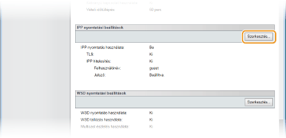 Kattintson a [Szerkesztés] lehetőségre az [IPP nyomtatási beállítások] pontban.