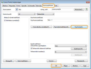 Ha a készülékre telepítve van az opcionális papíradagoló, akkor végezze el a következő műveletet a nyomtató-illesztőprogramban.