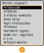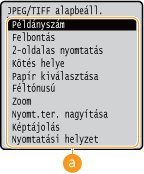 <PDF/XPS alapbeáll.> vagy <JPEG/TIFF alapbeáll.>