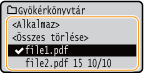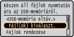 Ha az 1. lépésben a képernyőn kiválasztja a <Fájlok rendezése> beállítást, akkor a nyomtatandó fájl kiválasztásakor módosíthatja a fájlok megjelenítési sorrendjét.