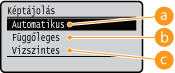 Amennyiben a <Függőleges> vagy a <Vízszintes> pontban megadott beállítás nem illeszkedik a kép tájolásához, akkor a kép kicsinyítve kerül nyomtatásra.