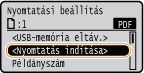 Válassza ki az <Nyomtatás indítása> lehetőséget, és nyomja meg az