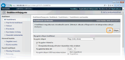 Kattintson a [Beállítások/Bejegyzés] gombra.