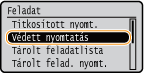 gombokkal válassza ki a <Védett nyomtatás> lehetőséget, és nyomja meg az