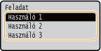 Ha az SD-kártyán több felhasználónak vannak védett dokumentumai, akkor a fenti képernyő előtt az alábbi felhasználóválasztó képernyő jelenik meg. Válassza ki a saját felhasználónevét, majd nyomja meg az