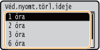 Válassza ki a <Véd.nyomt.törl.ideje> lehetőséget, és nyomja meg az