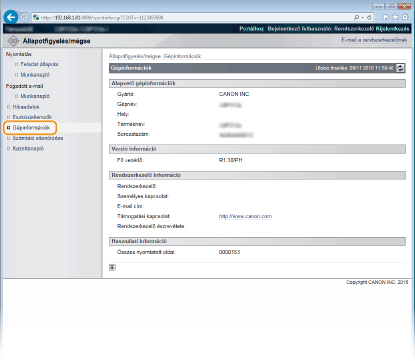 [Kezelői beállítások] éapon állíthatók be a [Beállítások/Bejegyzés] oldalon.